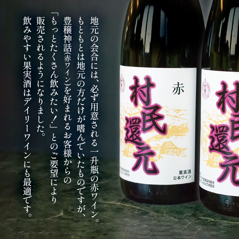 もともとは、地元の方だけが嗜んでいたものですが、豊穣神話(赤ワイン)を好まれるお客様からのもっとたくさん飲みたい!とのご要望により販売されるようになりました。