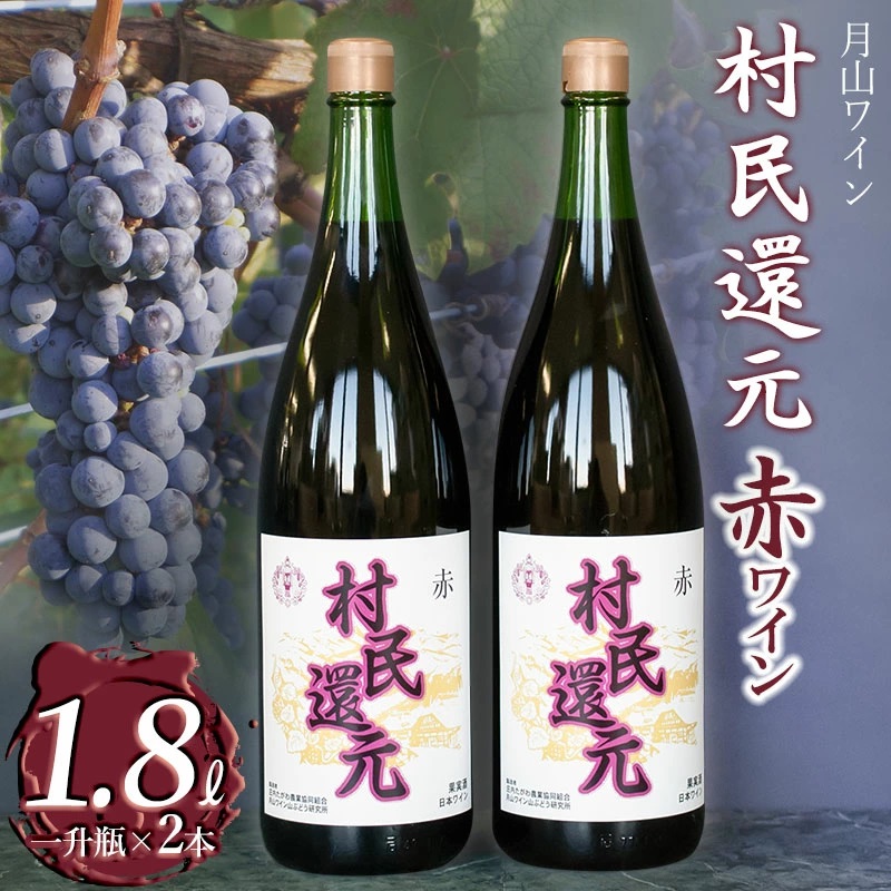 ・月山ワイン 村民還元 赤ワイン 1,800ml ×2本