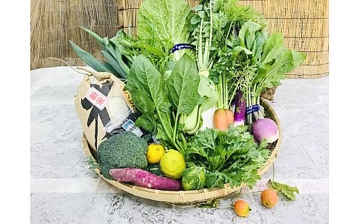 - 季節の野菜5種以上 約2kg (※収穫状況等により詰め合わせる野菜の種類は異なります。)