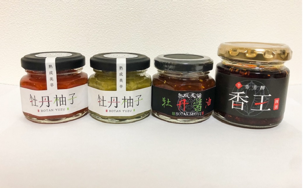 その牡丹柚子を醤油とみりんで漬け込んだ「牡丹醤油」、信州野菜から丁寧に香りをうつし、コクを深めた本格辣油「香王」。