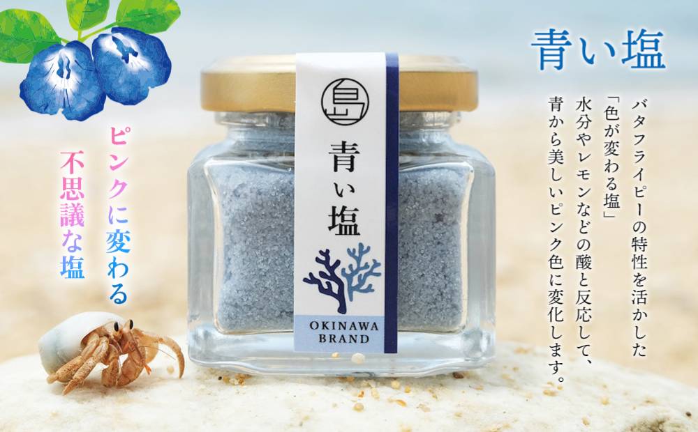 有機JAS認定農園で栽培されたバタフライピーを使った「青い塩」は、