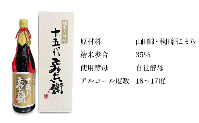 (アルコール度 15~16度・精米歩合35%・山田錦・秋田酒こまち)