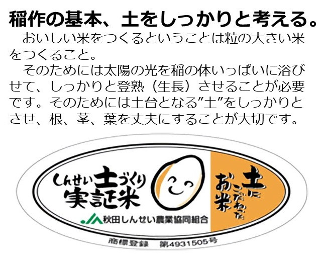 JA秋田しんせい(由利本荘市、にかほ市)管内で、「土づくり」を基本とし栽培されたお米です。