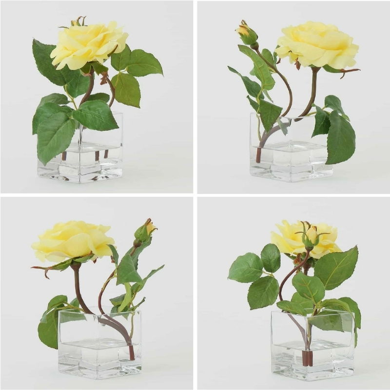 ガラスベースに水に見立てた透明な樹脂を合わせ、よりリアルに花の自然な姿を表現するスタイル、イリュージョンフラワー。