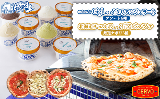 ジェラテリアGigi イタリアンジェラート アソート6種 チェルボ 石窯ピッツァ 厳選ナポリ3種 セット ジェラート 計6個 カップ スイーツ ピザ ピッツァ 石窯ピザ 計3枚 お取り寄せ グルメ ふるさと納税 北海道 恵庭市 恵庭
