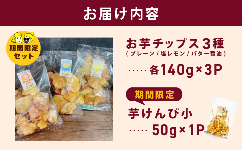 お芋チップス3種(プレーン/塩レモン/バター醤油):各140g×3P