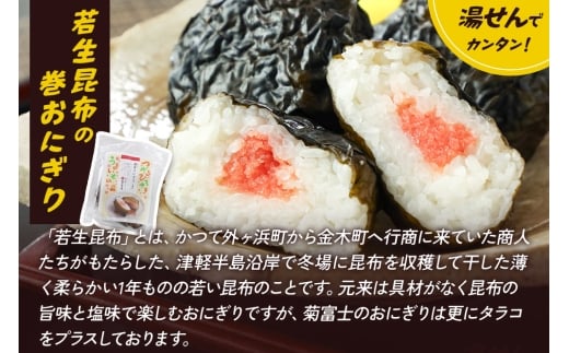 一年ものの薄い昆布に包まれたおにぎりをアツアツでお召上がりください。
