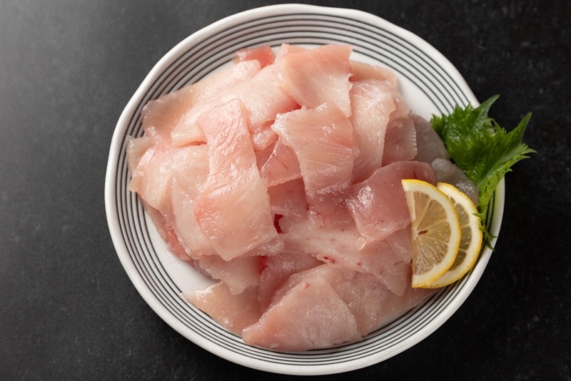 びんちょう鮪切り落とし:びんちょう鮪、食用植物油脂、PH調整剤、酸化防止剤(V.C)