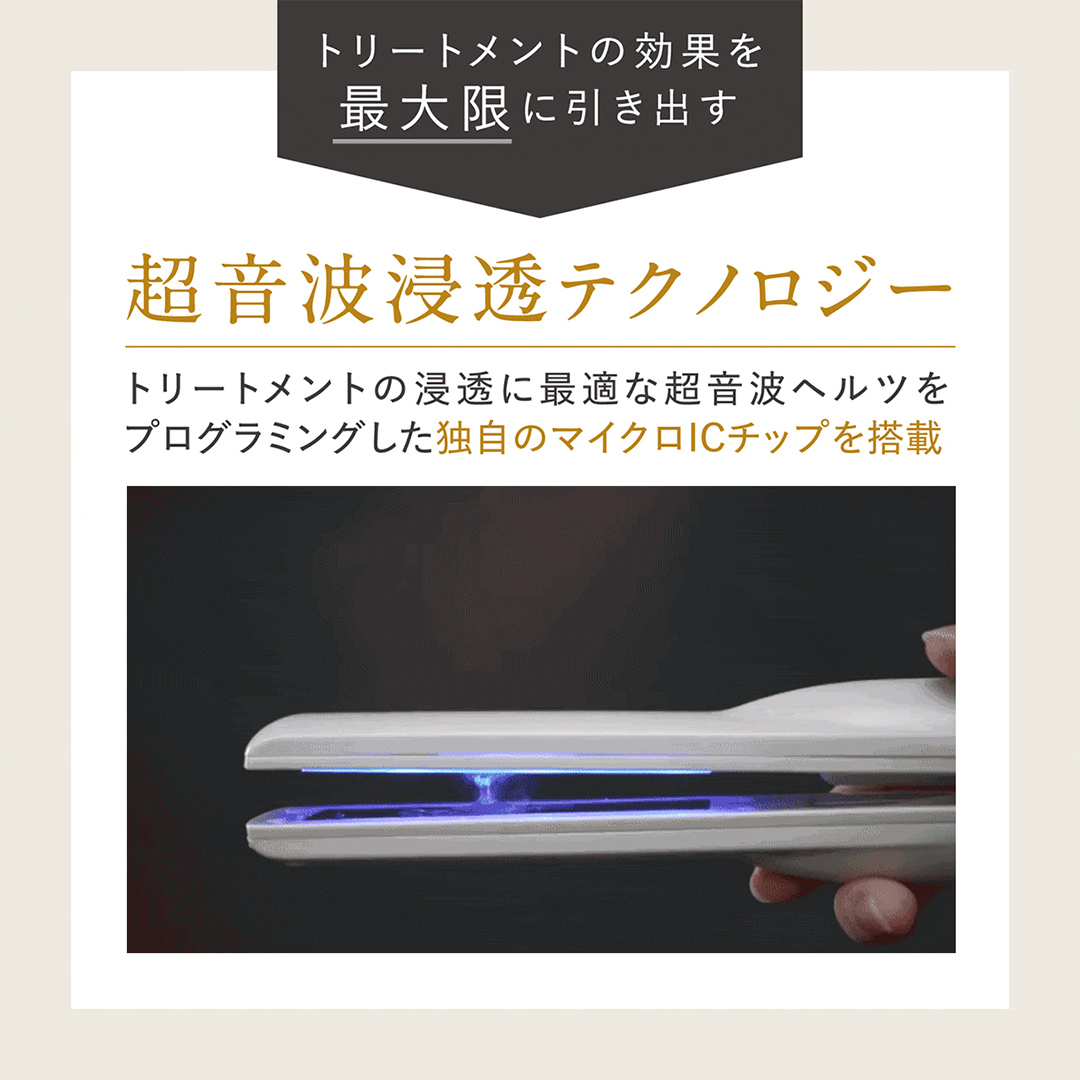 トリートメント剤を浸透させるのに適した周波数の超音波をプログラミングした、独自のICチップを搭載しています。