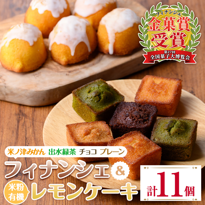 鹿児島県出水市で育ったみかんや緑茶、卵をたっぷり使用したフィナンシェと有機レモンを使ったレモンケーキ。小麦不使用で米粉を使用しているのでおなかにも優しいです。