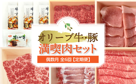 オリーブ牛・豚満喫肉セット(偶数月 全6回)【定期便】