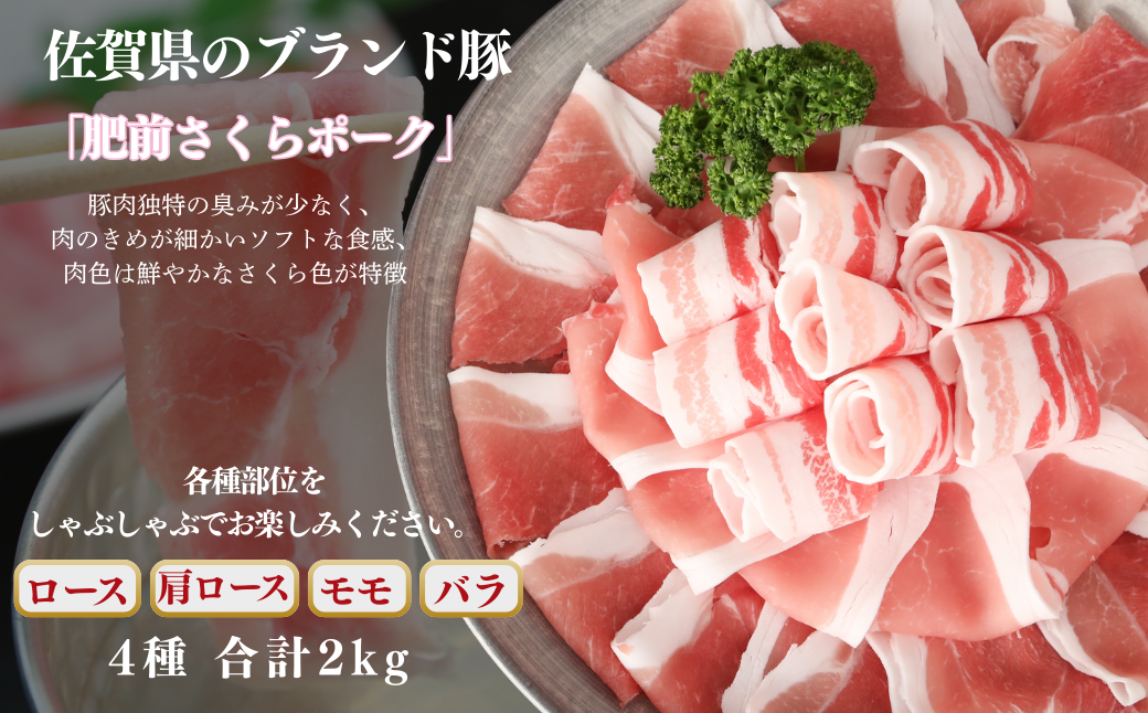 佐賀県産 佐賀市 豚肉 肥前さくらポーク しゃぶしゃぶ 薄切り スライス ロース 肩ロース モモ バラ 2kg ブランド豚 九州