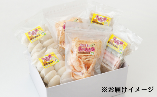 昔懐かしい味の揚げおかきと丸餅・切り餅のセットをお届けします。