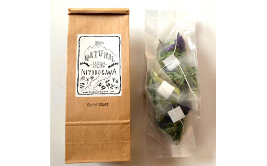 清流「仁淀川(によどがわ)」をイメージした澄みきったブルーのハーブティー。6種類のハーブが作り出すレモンの様な香りとミントの爽やかさ、ほんのりとした甘みはどなたでも楽しめる優しい風味です