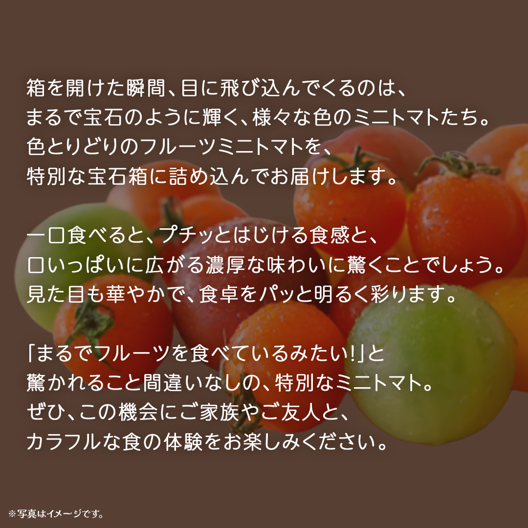 色とりどりのフルーツミニトマトを、特別な宝石箱に詰め込んでお届けします。