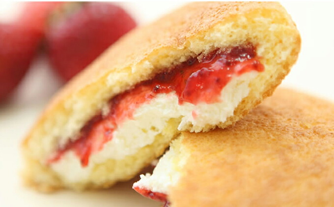 ふわっとしたケーキ生地で、無糖の生クリームと甘酸っぱい苺ジャムをサンドしました。
