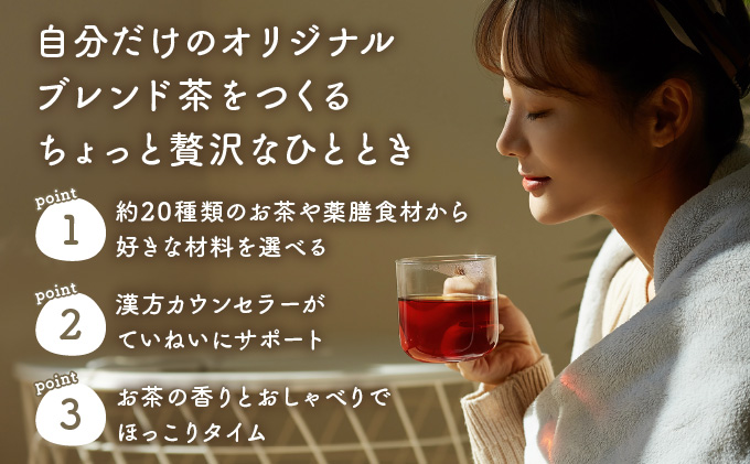 お茶と薬膳食材、あわせて約20種類の材料から、「自分だけのブレンド茶づくり」を楽しめます。