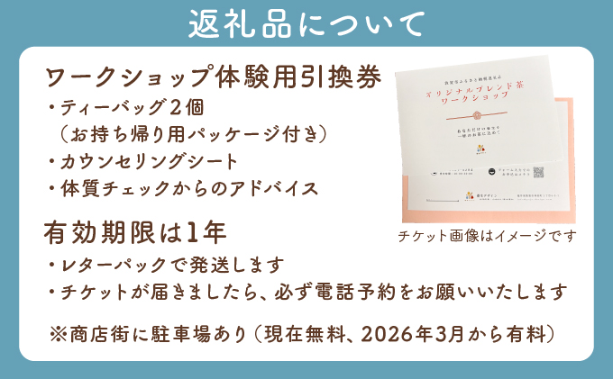 ![漢方カウンセラー監修 オリジナル ブレンド茶作り ワークショップ【 体験 チケット ブレンド茶 お茶 ブレンド 漢方 カウンセリング アドバイス 大人 自分だけの味 思い出 旅 記念 プレゼント ギフト 贈り物 】[072-a015]【敦賀市ふるさと納税】](https://www.furusato.aeon.co.jp/g_img/182028/file_de2627200141a38f2b2ffc025b7b0926.webp)