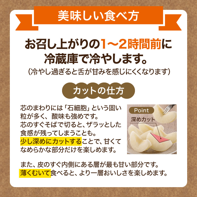 幸水や豊水より酸味が少ないため、優しい甘みを味わえます。