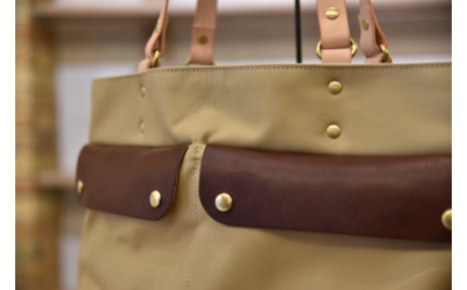 近江牛レザーと地産帆布で作ったトートバッグ 1個