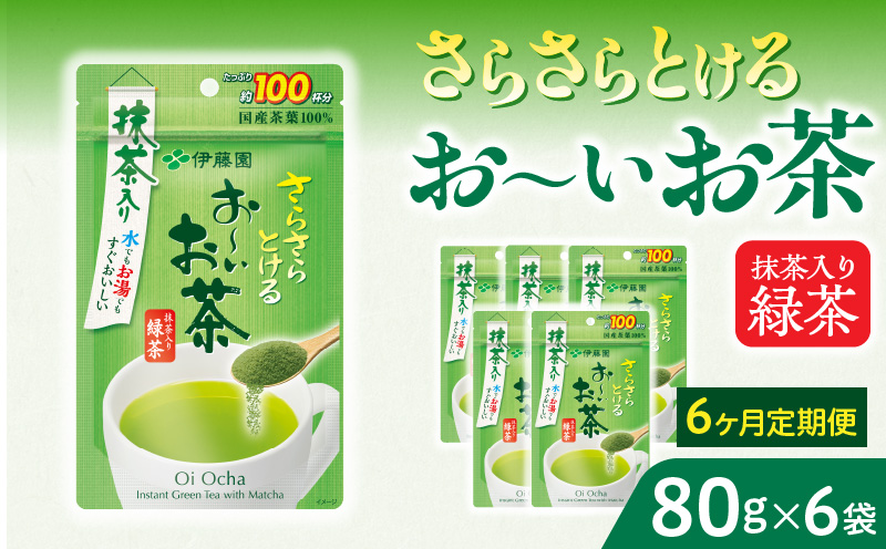 6ヶ月 定期便 さらさらとける おーいお茶 粉末茶 粉末 粉末緑茶 伊藤園 抹茶入り 緑茶 80g 6袋 冷水 すぐ溶ける チャック付 旨み 味わい まろやか 独自原料 インスタント 時短 簡単 手軽 お取り寄せ 愛知県 小牧市 送料無料
