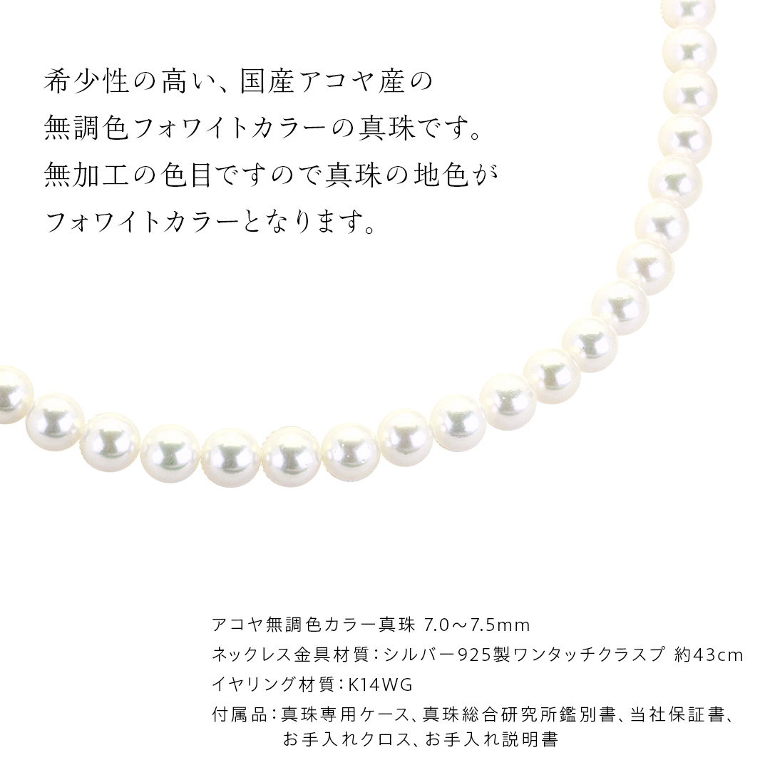 ![アコヤ真珠《 ネックレス + イヤリング セット 》 パール 7.0-7.5mm 希少 国産 無調色 フォワイトカラー 真珠 結婚式 冠婚葬祭 成人祝い 結婚祝い 厄除け 真珠婚 お祝い 入学式 卒業式 プレゼント ギフト 記念 贈り物 贈答用 アクセサリー ジュエリー ジュエリーマーノ 桜川市 [AH155sa]](https://www.furusato.aeon.co.jp/g_img/082317/3446450_1753231355_square_image.webp)