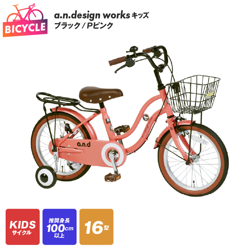 シングルスピード、ワイヤーバスケット、補助輪、バンドブレーキ装備のキッズサイクル