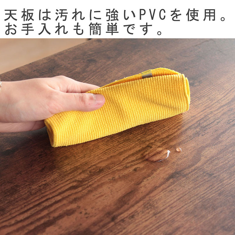 天板は耐水性、防汚性のある茶系のレトロ色のPVCで仕上がっています。お手入れも簡単です。