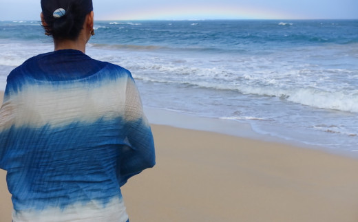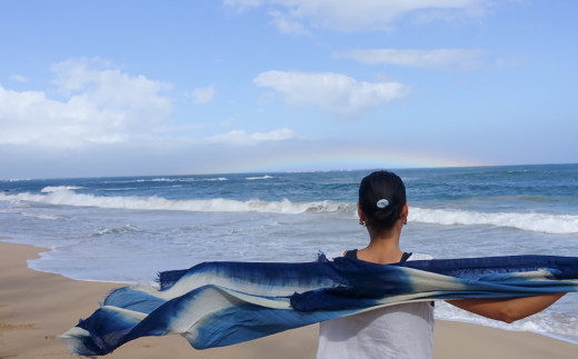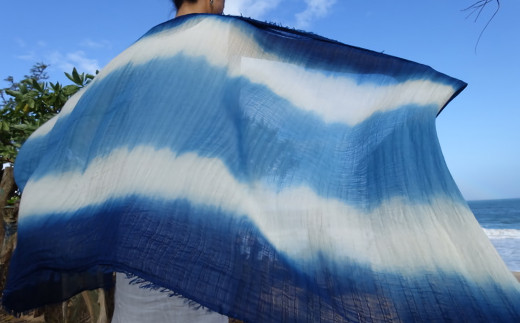 おのころ藍の超大判ストール 1枚 丁寧に織られた播州織(210×90cm)の大判コットンストールを、島の海と空をイメージして藍染しています。