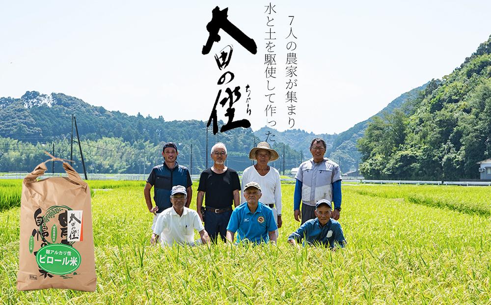太田川清流を水源とする那智勝浦町の米処「太田地区」にてピロール農法で作ったお米です。ピロール農法によりラン藻がたくさん増殖した土壌で作ったお米は普通のお米よりミネラルやビタミンを多く含み、ミネラルがキレート化されていて体に吸収されやすくなっています。また太田地区では籾で保管し、発送の際に精米しますので新鮮です。