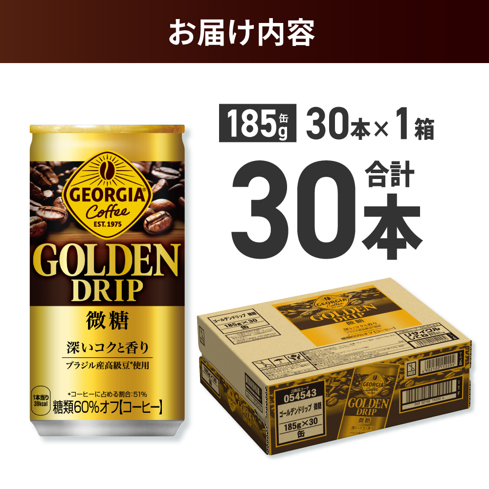 ■関連キーワード:ジョージア ゴールデンドリップ 微糖 185g 30本 缶コーヒー 珈琲 飲料 coffee ソフトドリンク 挽きたてアロマ製法 糖類60%オフ 北海道 札幌市