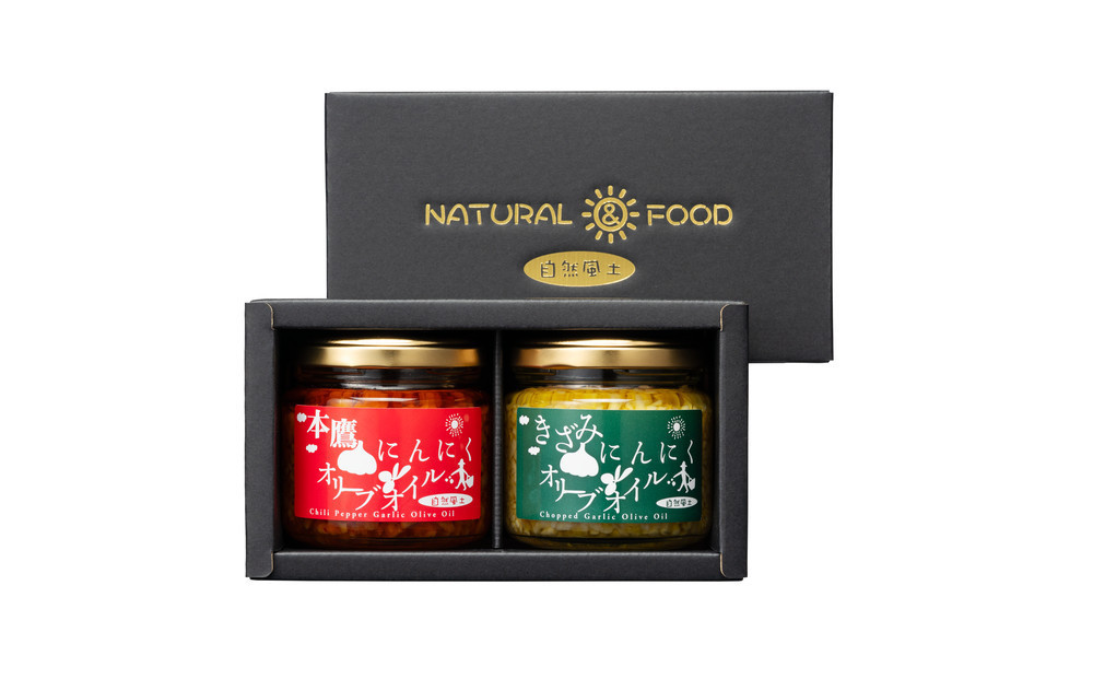 香川の豊かな自然で育ったにんにくと、こだわりのオリーブオイルを使用した贅沢な調味料をセットにしました。