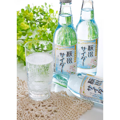 涼しげな青色瓶で飲む桜川サイダーは、どこか昔懐かしい気持ちにもなります。
