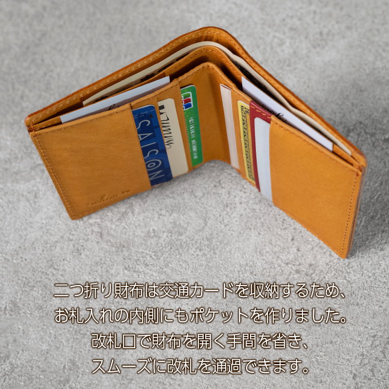 こちらの財布にはSuicaやICOCAなどの交通カードを収納可能にするため、お札入れの内側にもポケットを作りました。