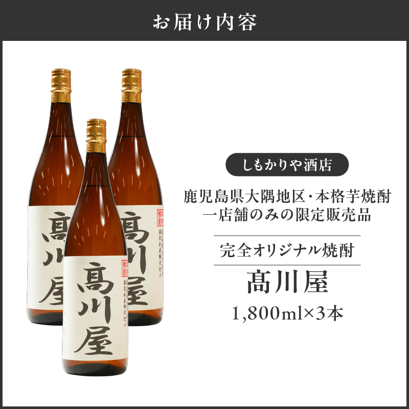 その想いを実現すべく、地元で「海」や「くじら」をはじめとした数々の銘酒を世に生み出してきた大海酒造株式会社とコラボで生み出された完全一店舗限定販売のオリジナル焼酎<髙川屋>。