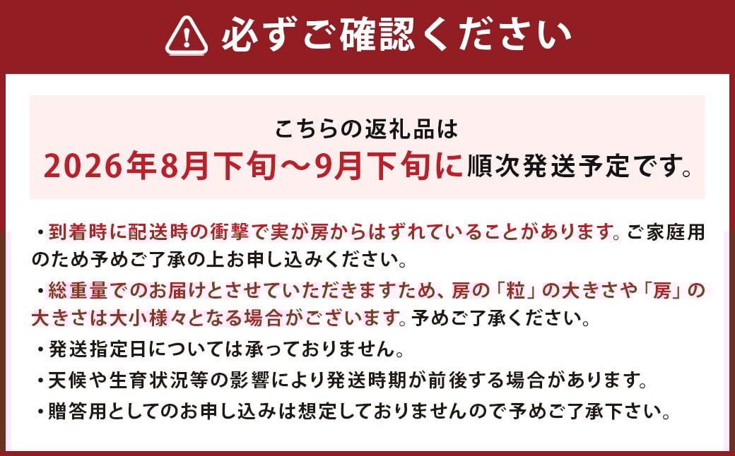 - 寄附確認後、2026年8月下旬~9月下旬に発送予定