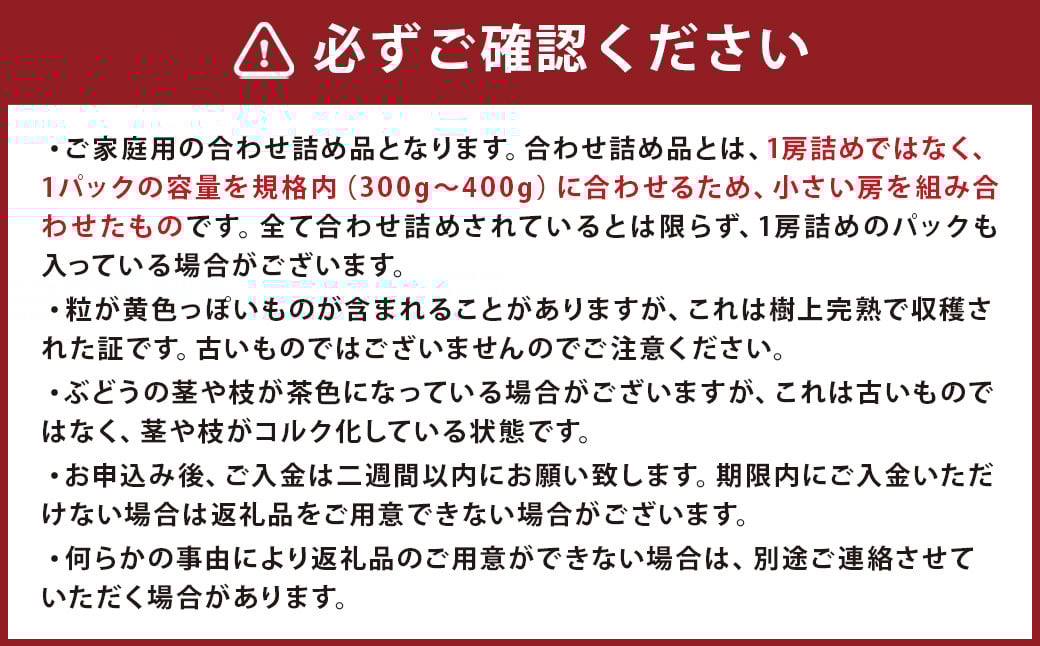合わせ詰め品とは、1房詰めではなく、1パックの容量を規格内(300g~400g)に合わせるため、小さい房を組み合わせたものです。