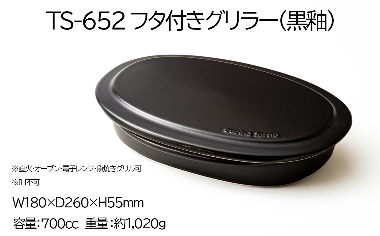 ■TS-652 フタ付グリラー(黒釉)