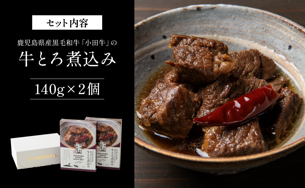 【プレミアムブランド】鹿児島県産黒毛和牛「小田牛」牛とろ煮込み 2個(140g×2)牛肉 お肉 肉 黒毛和牛 常温保存 簡単調理 電子レンジ レンジ レンチン 湯煎 惣菜 一品 おかず お惣菜 おつまみ 酒の肴 酒のつまみ お酒 お供 レトルト 惣菜レトルト レトルトパウチ 和食 煮込み 牛とろ煮込み 常温 ギフト プレゼント 贈答用 黒毛和牛 小田畜産 鹿児島県 南さつま市-[48-V18]