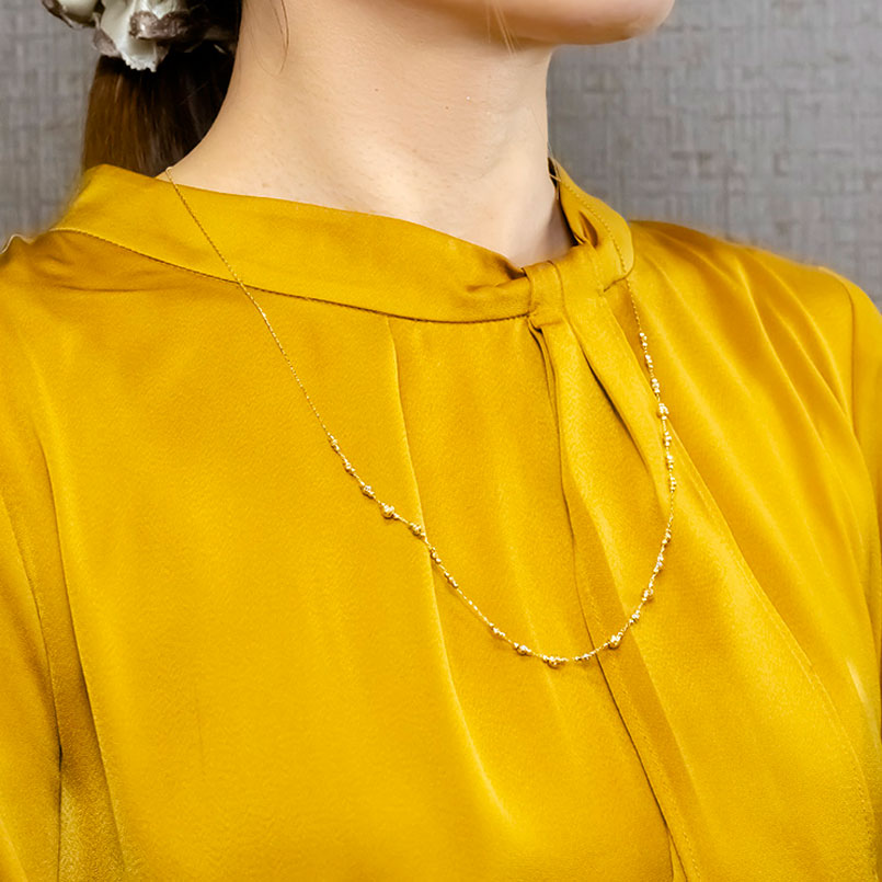 3カラーのカットボールが繊細に輝く上品なネックレス