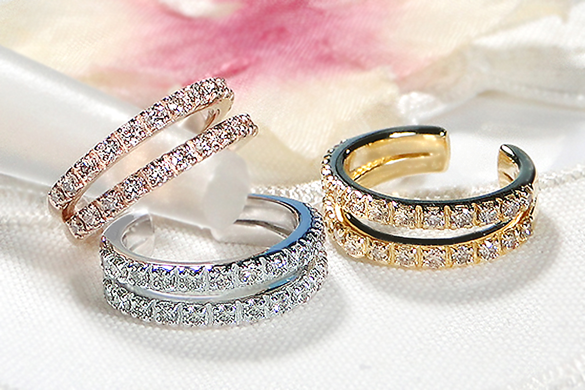 艶やかな2連フープに、輝きの綺麗なダイヤモンドを26石・トータル0.26ctあしらえた高級感漂うイヤカフ!