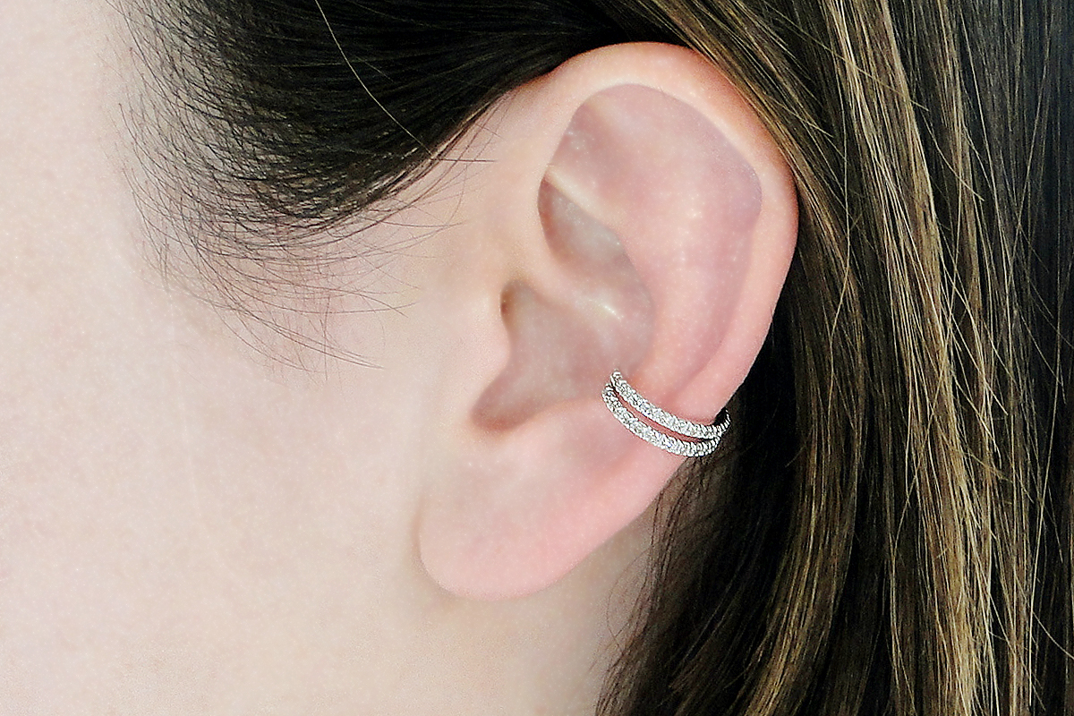 ピアスや、複数のイヤーカフとのレイヤード使いもおすすめ。
