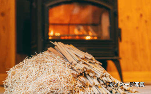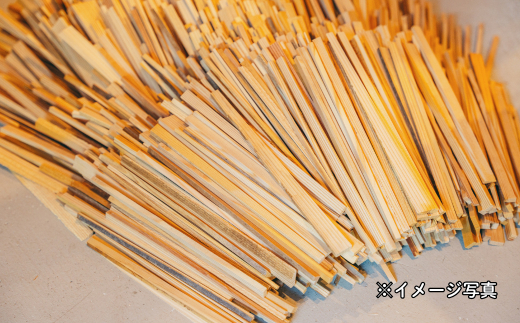 この焚き付け薪は箸の長さぴったりにそろっていますので、持ち運ぶ際に便利です。長さは18cm、幅は約1cm〜5cmほどが混在します。箸を作るために事前によく乾燥させているため、よく燃えます。量の割に軽いですが、よく乾燥している証拠です。