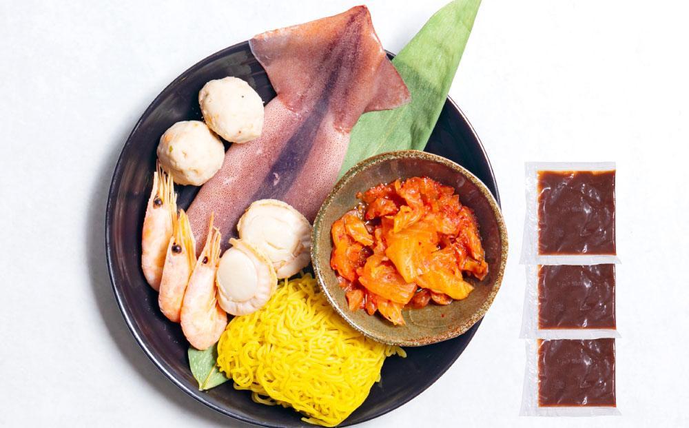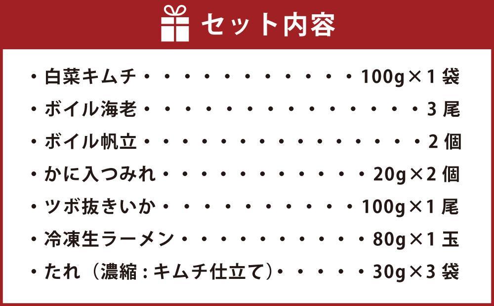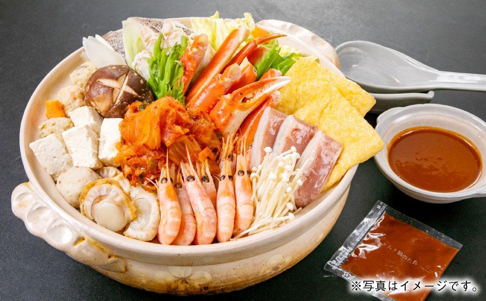 本場韓国の白菜キムチを使い、多彩な魚介を詰め合わせました。ピリ辛の「キムチ鍋」でお召し上がりください。