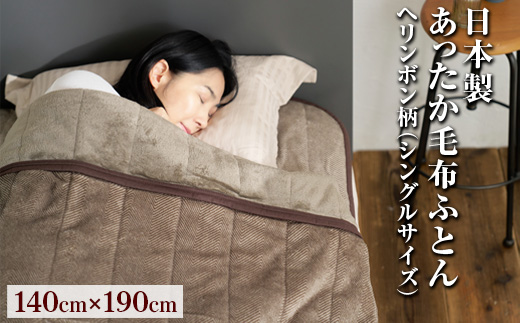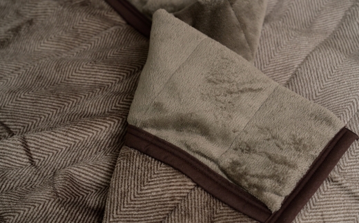 デザインはシックなブラウン色のヘリンボン柄。落ち着いた色合いとパターンが、インテリアにもマッチします。1枚あれば、リビングから寝室まで、家中どこでも活躍します。