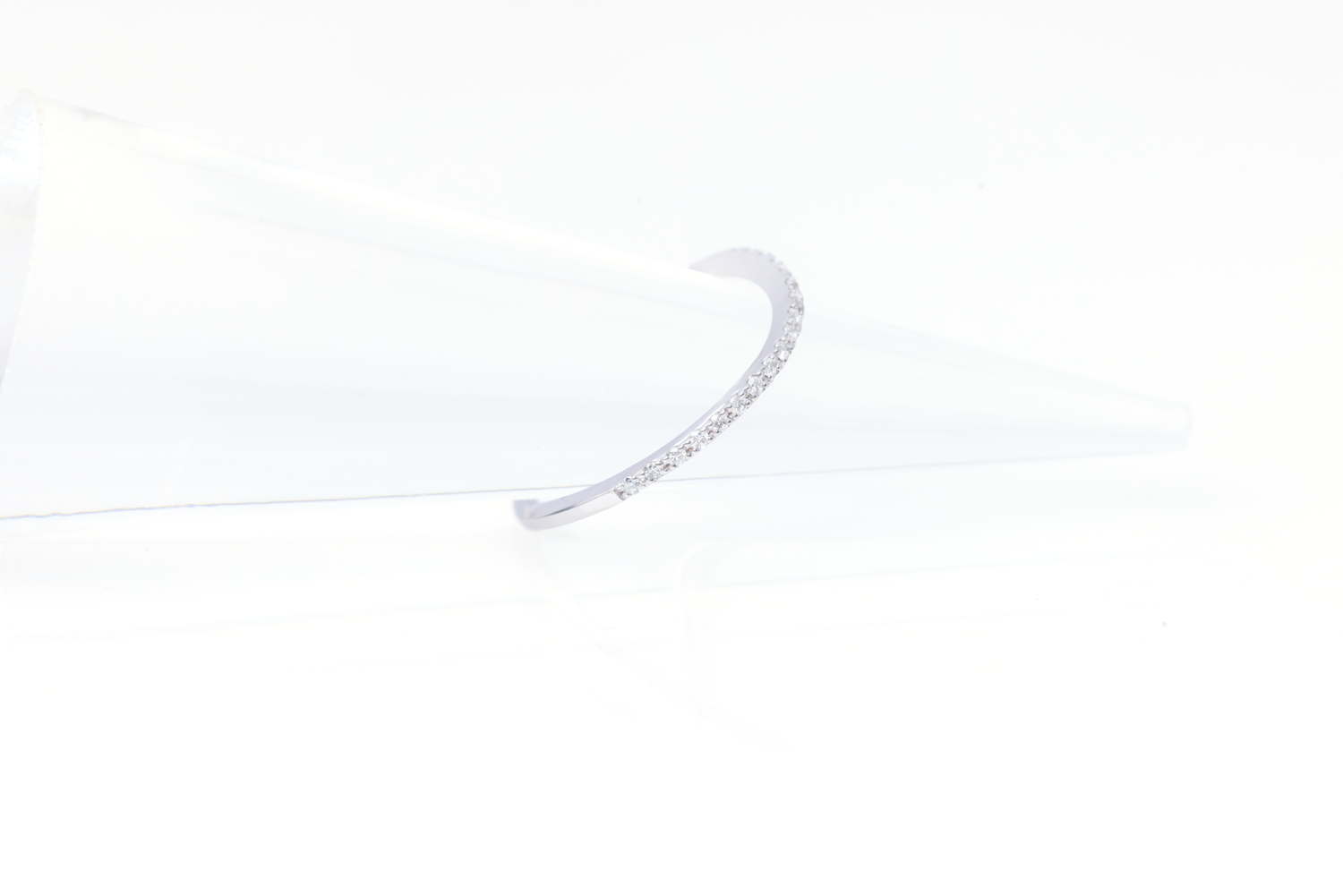 繊細にセッティングされたダイヤモンドが集まり、まるで花のようにやさしく輝きます。小ぶりながらも存在感があり、手元を明るく華やかに演出してくれるデザインです。