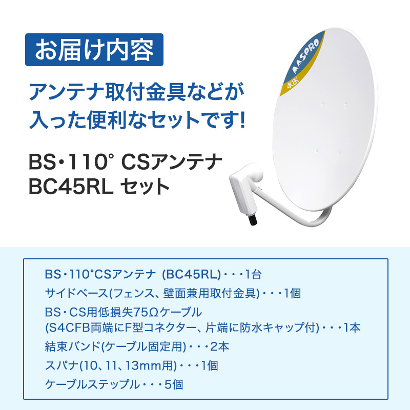 商品の仕様についてはマスプロ電工株式会社のHPをご確認ください。(モデル名:BC45RL-SET)