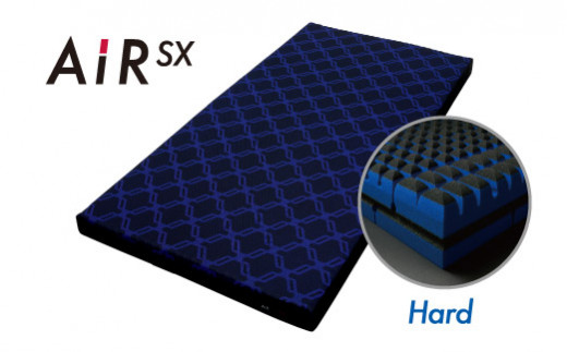 [エアーSX]マットレスは、4層の異なる素材による特殊立体クロススリット構造。しなやかにボディラインにフィットする柔軟性と、しっかり体を支える硬度、寝返りしやすい高弾力性。