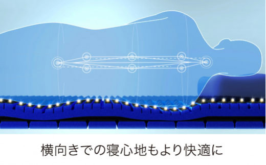 そのすべてを兼ね備えた緻密なプロダクト[エアーSX]は、新たな調整スリットと、両サイドのエッジを強化したカッティングにより、眠りのフォームを繊細かつタフにサポート。横向きでの寝心地もより快適に、眠りの質を更なる高みへ導きます。