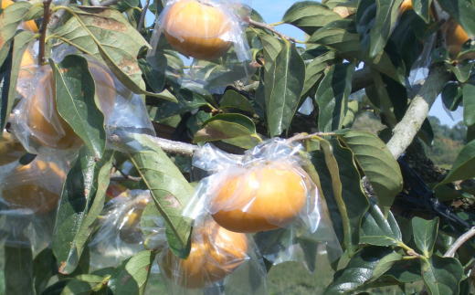 樹上で果実が実ったままの状態で、ひとつずつビニールの袋をかけ、渋抜き処理と熟成を行なった種無し柿です。
